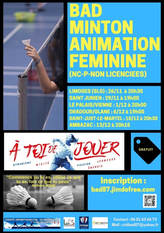 Ces animations se dérouleront sur la période de novembre et décembre et seront ouvertes aux joueuses adultes NC - P et non licenciées.